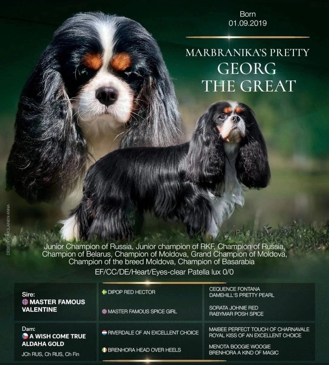 | |  | Nick: | A WISH COME TRUE ALDAHA GOLD | | Date of birth: | 00/00/0000 | | Sex | Female | | Colour: | Blenheim | | Place of birth: | CZECH REPUBLIC | | Kennel (Breeder): | | | Breeder: | | | Living place : | RUSSIAN FEDERATION | | City: | | | Kennel (Owner): | | | Owner: | | | Father: | RIVERDALE OF AN EXCELLENT CHOICE | | Mother: | BRENHORA HEAD OVER HEELS | | Weight: | kg. | | Height: | sm. | | Character test: | | | Tatoo: | | | Organization: | | | Titles: | |
